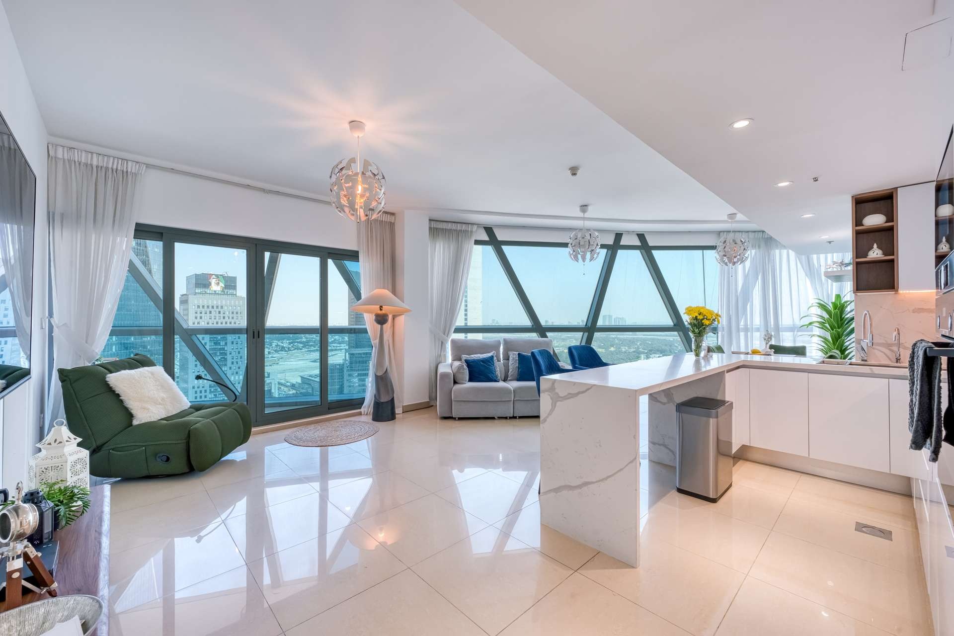 - High-end finishes and modern appliances.