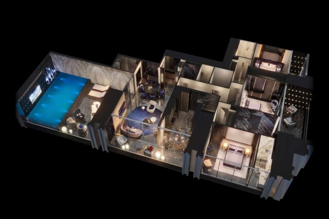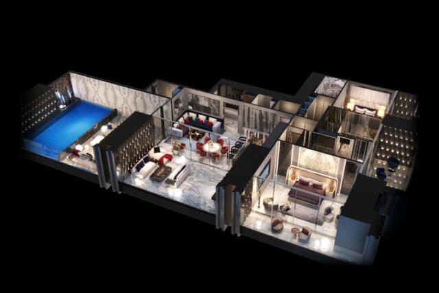 It offers exclusive residences, including lavish penthouses, with breathtaking city skyline views.