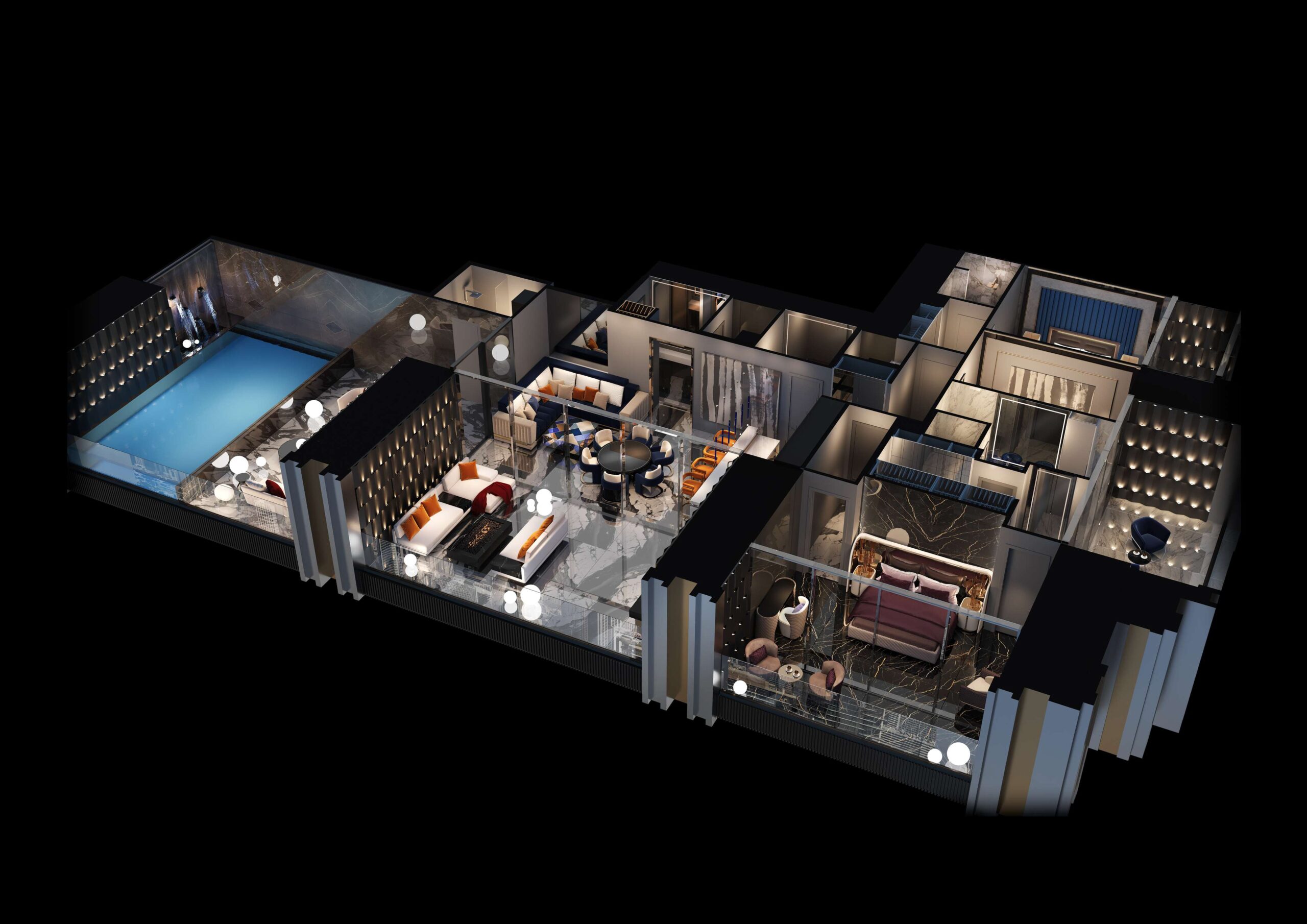 It offers exclusive residences, including lavish penthouses, with breathtaking city skyline views.