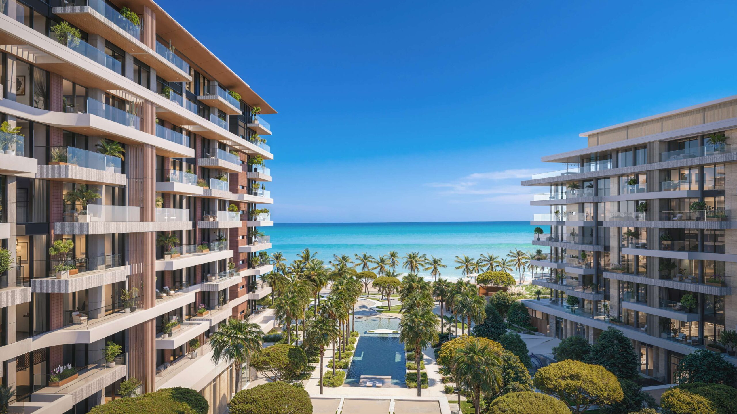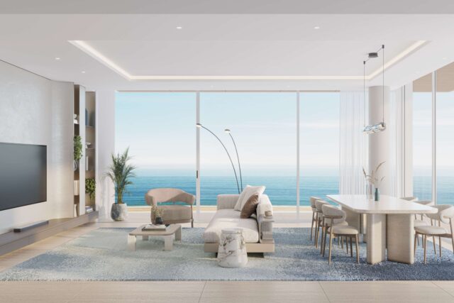 It offers premium apartments and penthouses with stunning sea views and over 20 world-class amenities, including F&B, retail, and private beach access.